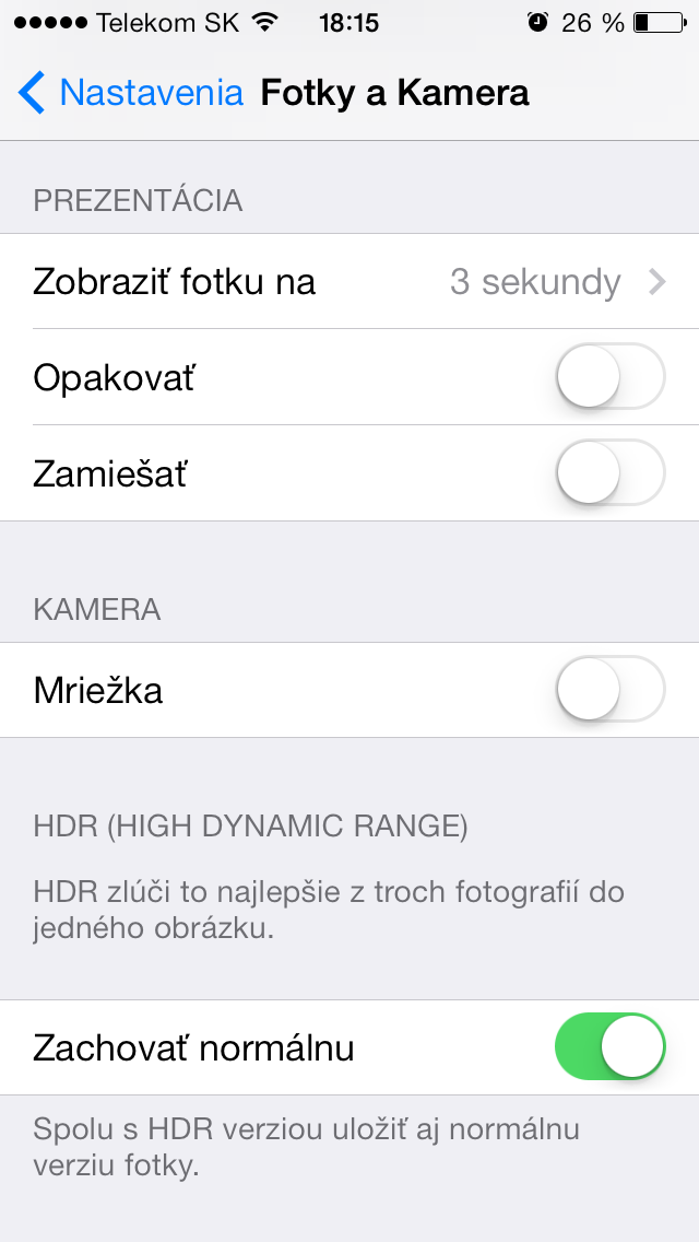 iOS 7 priniesol veľa zmien, ktoré sa dotkli každej jednej aplikácie. Monhé nastavenia sa stali jednoduchšími a intuitívnejšími. No napodiv sa stalo, že niektoré veci nedokážete nastaviť priamo v aplikácii ale musíte ísť do nastavení. Príkladom toho je aj mriežka pri fotení. Ja osobne som ju síce nikdy nepoužil, no viem o ľuďoch, ktorí ju bežne pri fotení používajú. Zapínanie a vypínanie mriežka sa presunulo z GUI fotoaparátu do nastavení. Pre niekoho dobré, pre niekoho nie. Ako sa vraví 100 ľudí 100 chutí. Tak sa poďme spoločne pozrieť kde spomínanú mriežku môžeme vypnúť alebo zapnúť: