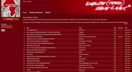 Apple začal prodávat Album Dance (RED) Save Lives Vol. 2, které stejně jako první album bojuje proti AIDS v Africe. Samotné album bylo možné již od listopadu předobjednávat v iTunes Store s tím, že až nyní získáváme nejen možnost album přímo koupit, ale také poslouchat ukázky jednotlivých skladeb. Skladby poskytli světoznámý umělci jako je například Katy Perry, Coldplay, Tiesto a mnoho dalších. Samotné album stojí v ČR/SR 9,99€, přičemž 7,65€ z této částky putuje přímo na nadaci (RED), kterou založil hudebník Bono.