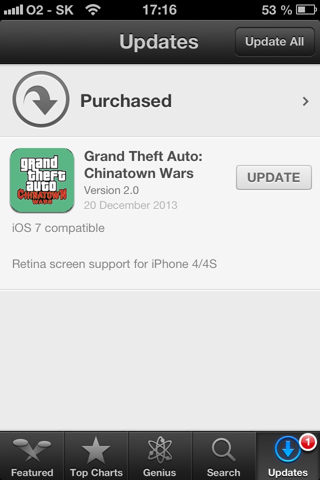 Vidno, že niektorí vývojári nezabúdajú na svoje staré hry a príkladom takého vývojára môže byť Rockstar Games. Dnes totiž celkom nečakane vyšiel update 2.0 pre Grand Theft Auto: Chinatown Wars, ktorý prináša podporu pre Retina displej u iPhone 4 a 4S, ako aj optimalizáciu pre iOS 7. Update vyšiel skutočne nečakane, keďže hra naposledy získala update v marci/březnu 2010 a odvtedy sa o nej Rockstar ani len nezmienil.