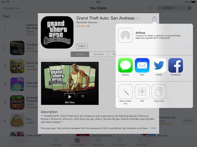 Obsah online obchodů společnosti Apple, tedy iTunes Store, iTunes App Store a iBooks store můžete darovat také přímo ze svého iPhone, iPodu touch nebo iPadu. První zásadou na kterou musíte pamatovat je fakt, že můžete darovat aplikaci z CZ iTunes App Store jen účtu, který je registrován a využívá CZ store. To znamená, že pokud máte český účet, pak není možné kamarádovi který je ze Slovenska a používá SK store, darovat obsah z iTunes Store! Aplikace, filmy, hudbu a knihy můžete darovat z českého iTunes Store pouze uživatelům s CZ účtem, kteří používají taktéž český iTunes Store.
