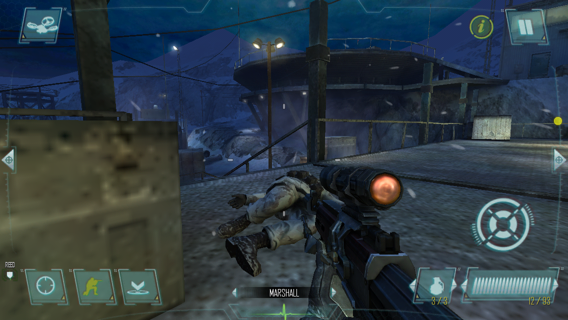 Pokud například přepnete z klasického pohledu na pohled zpoza zaměřovače, pak se okolí pušky rozmaže a ostrý máte pouze záběr před ústím hlavně, díky čemuž hra působí mnohem realističtěji. Pohyby postav začínají připomínat pohyby lidí, i když samozřejmě nemůžete počítat se zážitkem, který přinesl Battlefield 3 na konzole. Nicméně pohyby již vypadají mnohem realističtěji a zlepšují zážitek z celé hry. Poletující sníh v zimních misích, který překrývá dým z vašeho teplého dechu je pak prvkem, na který na iOS nejsme příliš zvyklí.