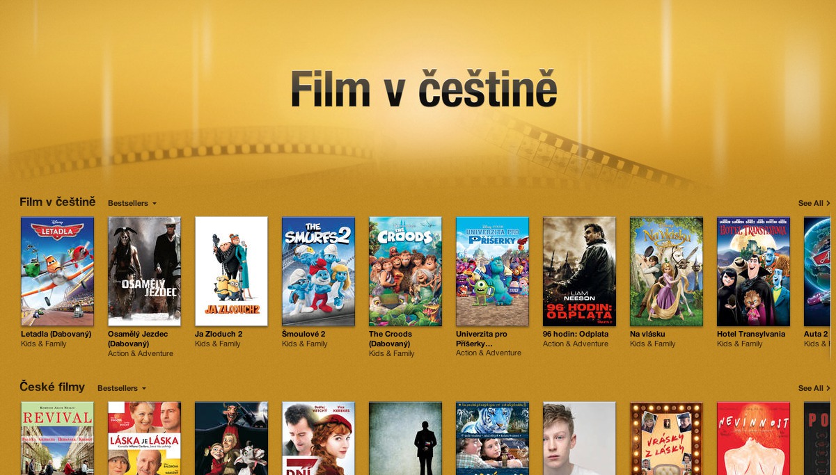 iTunes Store nabízí stejně jako iTunes App Store různé kategorie, ve kterých naleznete například žánrově podobné filmy nebo filmy se stejným hercem v hlavní roli. Jednou z těchto sekcí je také speciální sekce Film v češtině, ve které naleznete k dnešnímu dni již 168 dabovaných filmů a 17 filmů s Českou produkcí.