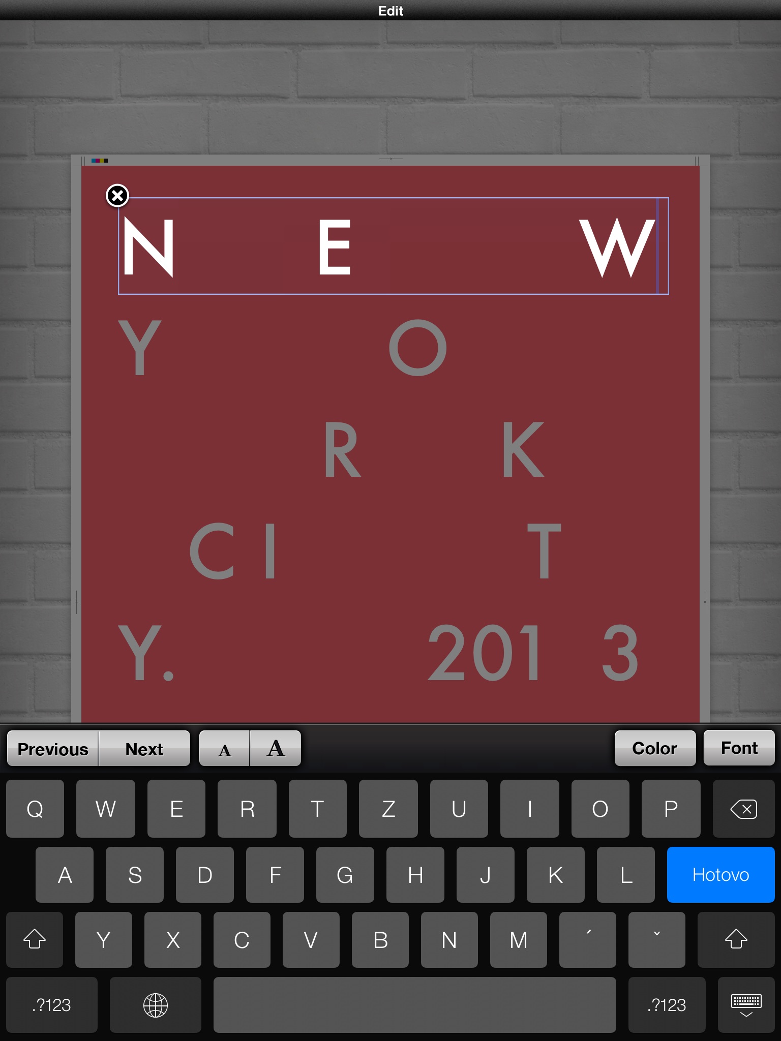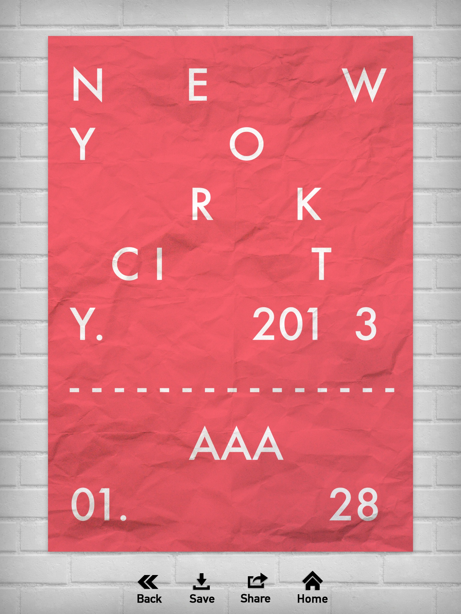 Po zvolení šablony plakátu máte možnost ji dále upravovat. Můžete změnit zbarvení, přidat podkladovou fotografii, do textových polí vložit vlastní text jako je například název výstavy, datum a tak podobně nebo přidat další textová pole. U textu lze měnit fonty, ty jsou však bohužel pojmenované až po tom, co na nich přidržíte prst, což je značně nemotorné řešení. Také paleta barev je dost omezená, dostat k dispozici pouze 4 odstíny zelené je opravdu velmi neuspokojivé. V dalším kroku lze měnit vzhled pomocí filtrů, kterých je bezplatně k dispozici 20, další si můžete dokoupit pomocí in-app nákupů. Váš plakát může působit zmačkaně, umazaně či zabarveně. Filtry jsou poslední úprava plakátu kterou budete provádět. Poté je plakát možné uložit, vystavit na sociální sítě, poslat Emailem a tisknout.