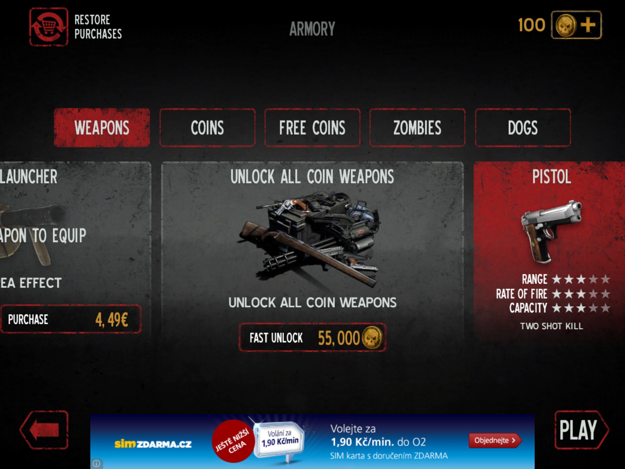Into the dead nabízí skvělou atmosféru, spoustu možností a zároveň je zdarma a právě tento mix zní skutečně skvěle, ale jak už to tak bývá, v dnešní době není skoro nic zdarma. Pojďme se tedy podívat na hru plnou In-App nákupů a reklam. Po zapnutí hry vás s největší pravděpodobností uvítá vyskakovací reklama, která zabere celou obrazovku. Po jejím odstranění stiskem křížku u horního okraje obrazovky se ocitnete v menu, v němž si jistě jako první zvolíte možnost play.