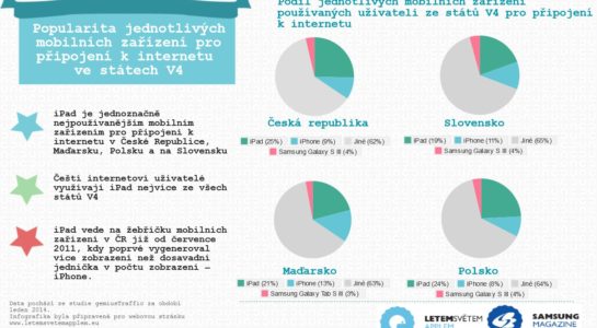 Společnost Gemius vypracovala pro Letem světem Applem infografiku a článek, ve kterém se zabírala statistikami využívání iOS produktů v ČR a dalších státech Visegradské čtyřky. Ukázalo se, že Apple iPad je nejpoužívanější pro surfování na internetu ze všech čtyř zemí právě v ČR, bohužel iPhone již u nás zaostává za SR i Maďarskem. Podívejte se sami na článek se statistikou a infografiku, která jej doprovází.