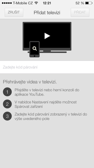 Pokud máte ve svém zařízení nainstalovanou aplikaci YouTube, automaticky se spustí po zadání URL aplikace a je možné ovládat YouTube přímo pomocí aplikace. Na výběr pak máte možnosti jako je vyhledávání videí, jejich seřazení do fronty, která se postupně přehrává na televizoru nebo všechny funkce, které jsou k dispozici přímo v aplikaci. Samozřejmostí je pak možnost zvolit si kdykoli během přehrávání, zda se má dané video přehrávat například na iPhone který držíte v ruce nebo na televizoru. Pokud tedy nemáte možnost přímé komunikace mezi televizorem a svým zařízením, můžete využít službu od YouTube a s aplikací v televizoru komunikovat pomocí webového rozhraní ve vašem zařízení nebo přímo pomocí aplikace.