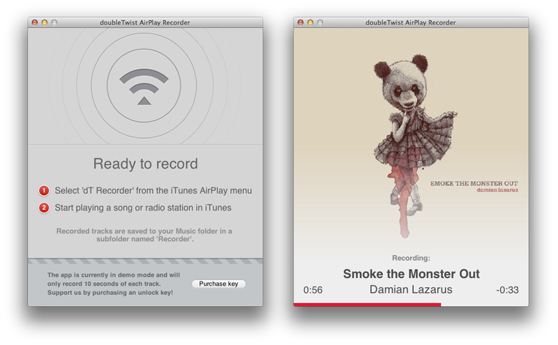 Jeho nová aplikácia nesie pomenovanie AirPlay Recorder a ako už názov napovedá, aplikácia využíva AirPlay. Je navrhnutá tak, že sa zobrazuje ako samostatné AirPlay zariadenie, ibaže sa nachádza priamo na počítači. Pretože iTunes Radio podporuje AirPlay, počúvanú hudbu je možné kedykoľvek možné začať streamovať do tejto aplikácie a ona začne tento zvuk nahrávať. Ale aj za takéto počúvanie sa platí a preto keď by ste chceli nahrávať celé skladby, budete si musieť zakúpiť plnú verziu aplikácie za 9,99 dolárov. Demo verzia nahráva len 10-sekundové ukážky skladieb. Spoluzakladateľka spoločnosti doubleTwist tvrdí, že s nahrávaním by nemali byť žiadne právne problémy, ale je treba zdôrazniť, že Apple zatiaľ na túto aplikáciu nezareagoval. Aplikácia vyžaduje OS X 10.7.3 alebo novší.