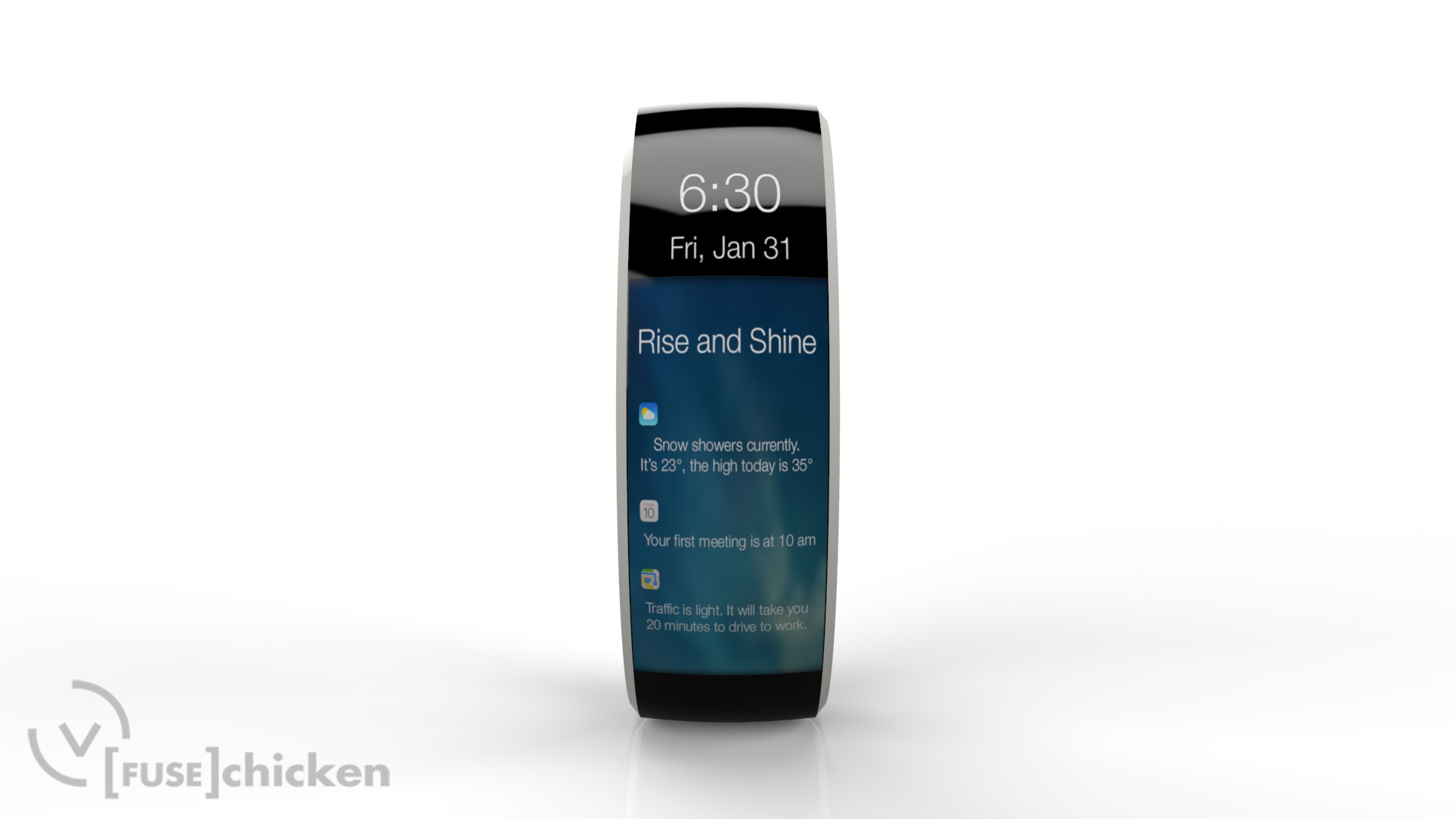Koncept vychází z náramku Nike Fuelband, ovšem s tím, že hodinky iWatch nabídnou plnohodnotný zakřivený displej s multi-touch ovládáním, na kterém se budou zobrazovat kromě klasických informací jako je datum a čas také notifikace jednotlivých aplikací. Samotné aplikace jsou pak ve spodním stavovém řádku pod notifikacemi. Autoři samozřejmě nemusejí počítat s dostupností technologií a tak uvádějí, že se hodinky budou nabíjet pomocí solární a kinetické energie. Jedná se o designově povedený koncept, který dokázal sladit operační systém a design samotných hodinek iWatch.
