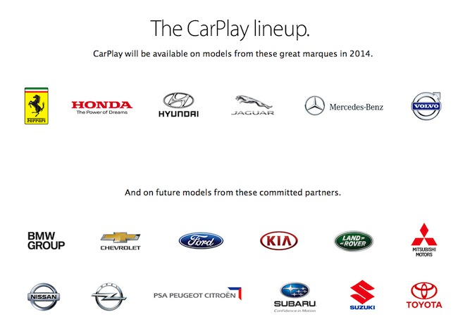 Apple představil funkci CarPlay již v loňském roce během WWDC současně s iOS 7. Tehdy však nesla funkce název iOS in Car a její grafické rozhraní bylo odlišné od toho, které Apple ukázal nyní. CarPlay se téměř rok od představení konečně dostane do prvních vozů, konkrétně do vozů výrobců Ferrari, Honda, Hyundai, Jaguar, Mercedes-Benz a Volvo. V následujících letech se k nim pak připojí také vozy automobilek BMW, Chevrolet, KIA, Ford, Land Rover, Mitshubishi, Nissan, Opel, Citroen, Subaru, Suzuki a Toyota.