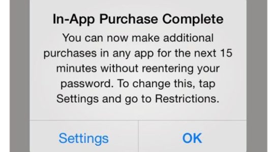 Mezi nové funkce operačního systému pro mobilní telefony iPhone, tablety iPad a multimediální přehrávače iPod touch iOS 7.1, patří také automatické upozornění uživatelů na 15 minutový limit týkající se nákupů v rámci in-app purchase. Uživatelé jsou nově upozorněni na to, že po zadání svého hesla k Apple ID, mohou provádět po dobu 15 minut od okamžiku, kdy heslo zadali, nákupy v rámci in-app bez toho, aniž by opět museli zadávat heslo. Funkce má za hlavní cíl ušetřit čas, během kterého musí uživatel zadávat své heslo, ovšem mohlo se stát, že právě díky tomuto usnadnění došlo k situaci, při které uživatel následně nakoupil další položku bez toho, aniž by to ve skutečnosti chtěl.