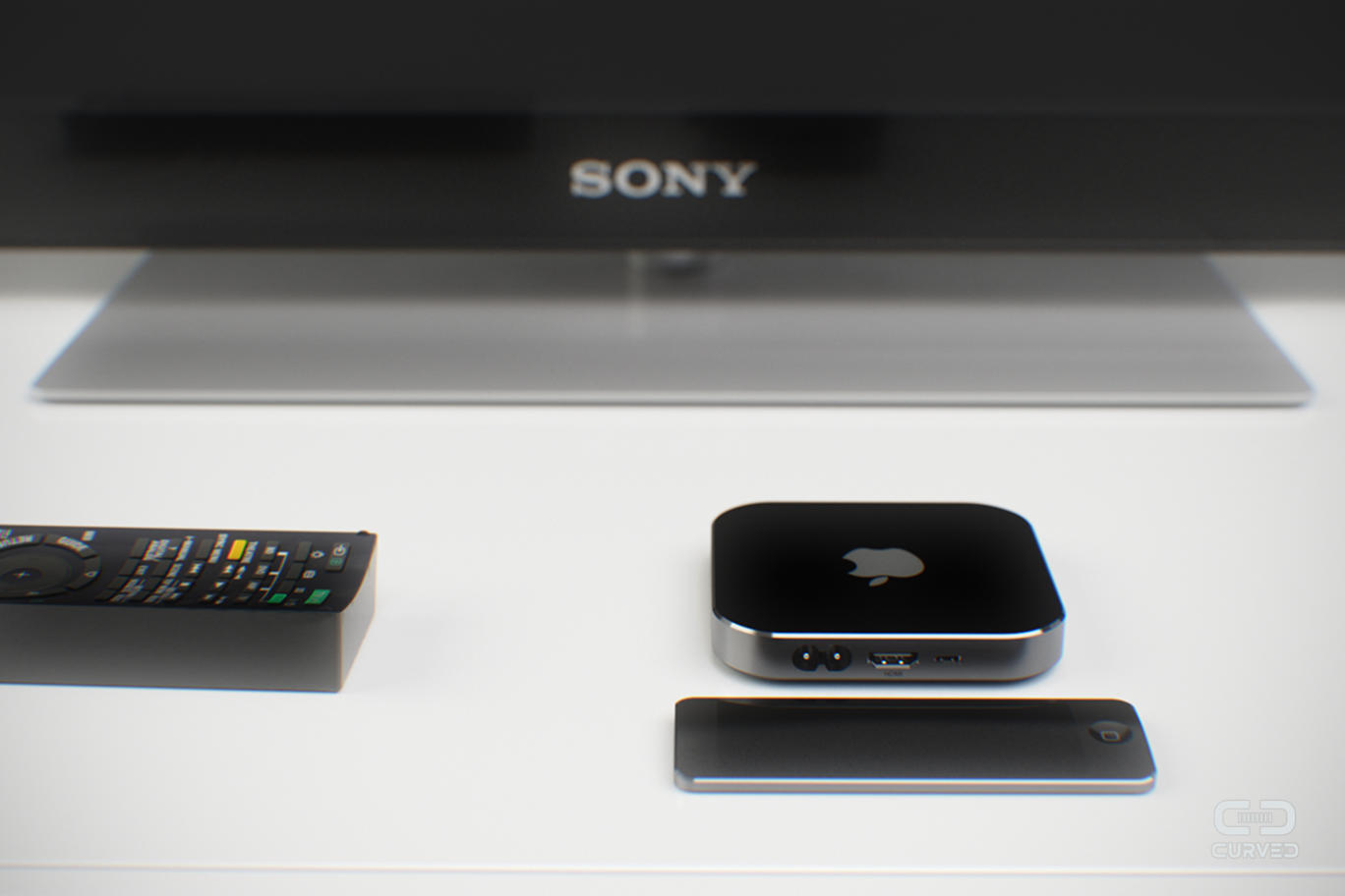 Magazín Curved vo svojom koncepte prezentuje, že nová Apple TV by mohla ponúkať diaľkový ovládač Remote s dotykovým displejom a pútkom Loop, ktoré Apple predstavil ako súčasť iPod touch 5. generácie. Že nová generácia Apple TV ponúkne niečo viac, naznačil aj Tim Cook, ktorý potvrdil, že Apple TV už nechápe ako hobby. Apple TV by podľa Curved mohla mať rozmery 9,8 × 9,8 centimetra, no na hrúbku by mala iba 1,67 centimetra. To je podstatne menej než v súčastnosti, keď má hrúbku 2,3 cm. TV by bola dostupná v dvoch farebných verziách, v čiernej a zlatej a tomu sa prispôsobia aj farby diaľkových ovládačov.