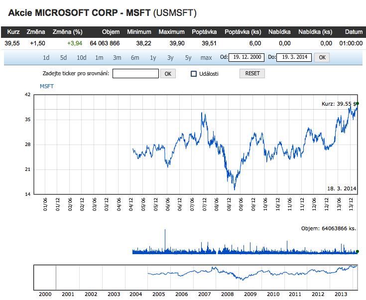 Akcionáři a celý trh se z informací o Office pro iPad samozřejmě velice potěšil a to navzdory faktu, že ani jedna z těchto informací není oficiální a jedná se pouze o informace analytiků a médií, které nemusí se skutečností příliš korespondovat. Ani to však nezabránilo raketovému růstu hodnoty akcií společnosti Microsoft. Akcie společnosti Microsoft tak nakonec uzavřely včerejší den na částce 39,55$ za jeden kus, což představuje několikaleté maximum s tím, že podobných hodnot akcie dosahovaly naposledy na přelomu tisíciletí. Za růst může jediný produkt konkurenční společnosti, kterým je samozřejmě iPad. I zde je tedy mimo jiné vidět neuvěřitelná síla Applu, kterou společnost s nakousnutým jablíčkem v logu disponuje.