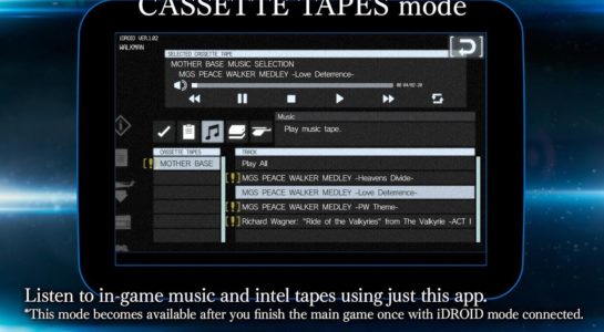 Aplikace dokáže zpřístupnit trojici speciálních módů, mezi které patří iDroid, Mother Base a Cassette Tapes. Zřejmě nejzajímavější pro hráče je iDroid, tedy mód ve kterém ovládáte drona a můžete tak prozkoumat mapu, využít různé režimy pohledu včetně termovize a nebo například přivolat pomocné jednotky. iDroid tedy skutečně dělá hru interaktivnější, v momentě kdy totiž ve hře vyšlete drona, automaticky odložíte ovladač od Xboxu nebo PS3 a vezmete do ruky iPad, na kterém ovládáte drona, stejně jak by to udělala samotná postava když odloží zbraň a začne používat tablet. Mother Base umožňuje vytvářet vlastní základny, tedy lépe řečeno armády a vylepšovat jednotky nebo zbraně. Cassette Tapes umožňuje poslouchat soundtrack ze hry.