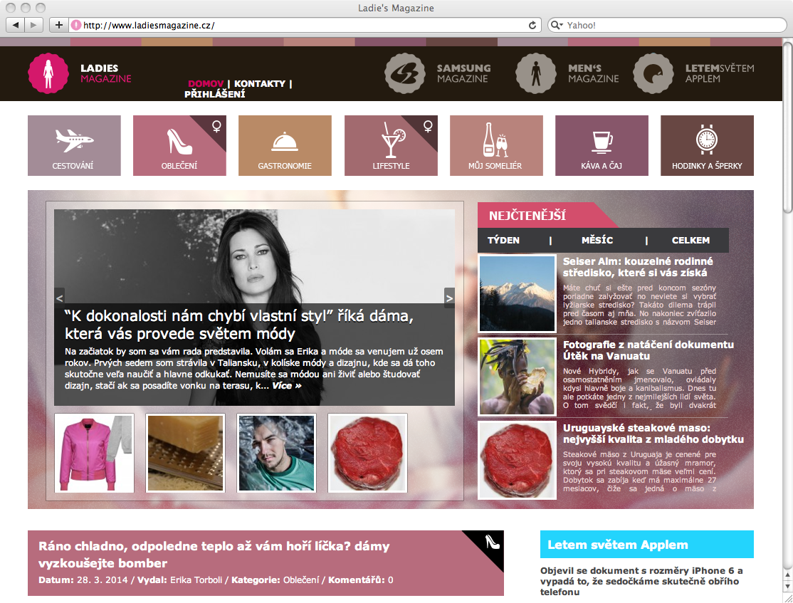 Mám tu čest o všech z těchto lidí mluvit jako o svých přátelích a mohu vám zaručit, že se jedná o dámy a pány, kteří patří ve svých oborech k absolutní špičce a jsou nadšeni z toho, že mohou své zkušenosti předat čtenářům našich magazínů. Pokud se tedy chcete dozvědět o cestování, oblečení, gastronomii, fitness, someliérství, kávě, čaji a hodinkách a špercích a dalších oborech z pera skutečných odborníků, pak vítejte v magazínu Ladie‘s.