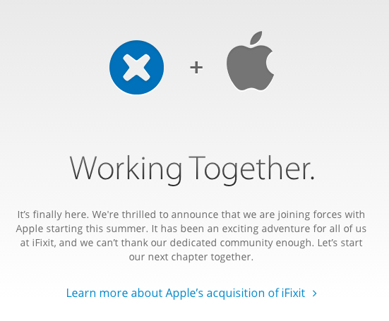 Poďme sa však pozrieť na to, ako sa oslavoval 1. apríl v zahraničí. Známy server iFixIt dnes prekvapil a zároveň napálil tých, ktorí chceli na jeho stránke nájsť návody. iFixIt vydal správu, že jeho stránka bola odkúpená spoločnosťou Apple, ktorá síce neuvádza, aké úmysly má so svojou novou akvizíciou, no vďaka odborníkom z tohto tímu sa chce postarať o to, aby boli jej zariadenia tie najlepšie z hľadiska opraviteľnosti. Samozrejme nechýba ani typická hláška hovorcu z Apple: „Apple z času na čas odkupuje menšie spoločnosti, ale nediskutujeme s verejnosťou o našich budúcich plánoch.“