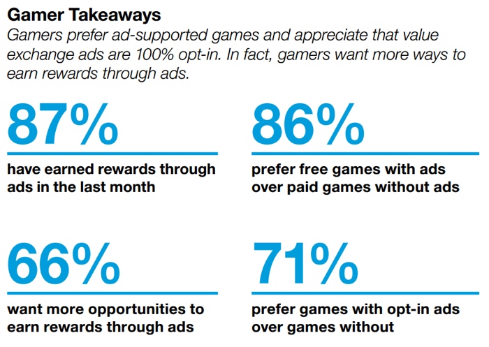 Hráči také preferují reklamní model, kdy si mohou vybrat, kdy jim hry zobrazí reklamu. Hráči mají teké rádi freemium hry, ve kterých nemusí platit přímo penězi, ale herní obsah mohou získat výměnou za sledování reklam, přehrání videa nebo například sdílením hry na sociálních sítích. Například hra Disco zoo, která odměňuje hráče za sledování krátkých reklamních videí si získala u hráčů velkou oblibu. V součansé době je pro vývojáře nejlepší zvolit model, při kterém vydá dvě verze stjené hry, přičemž jedna je dosutpná zcela zdarma se zobrazováním reklam a druhá je pak dostupná za mírný poplatek s tím, že se tak hráč zbaví reklam. Hráčům totiž nejvíc vadí absence možnosti vyzkoušet hru předtím, než ji zakoupí.
