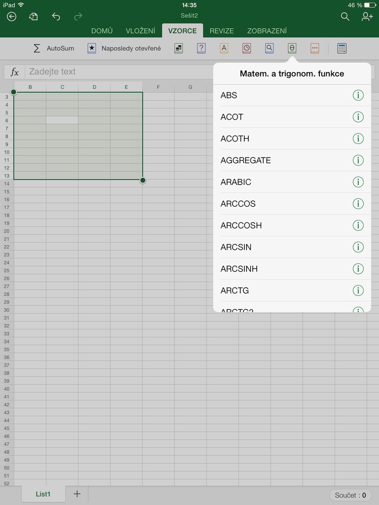 Excel for iPad
