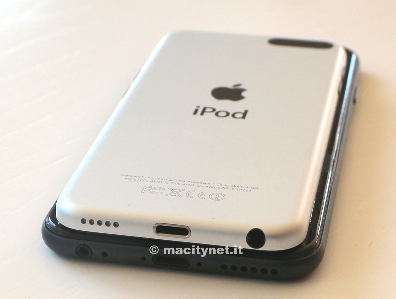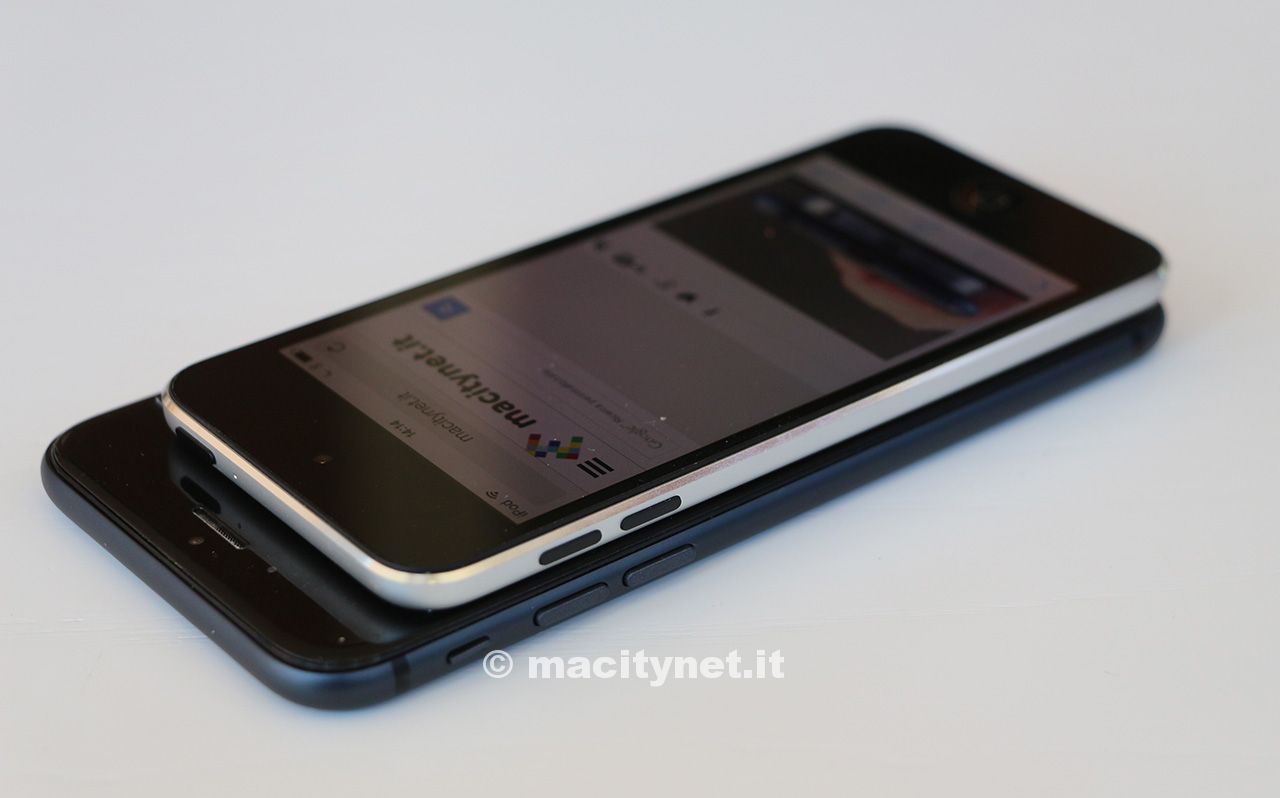 Jedna z mnohých makiet iPhone 6 sa dostala aj do redakcie talianskeho serveru Macitynet, ktorý nelenil a okamžite porovnal maketu s iPodom touch 5. generácie. Fotografie serveru nám ukazujú, že tenkosť a dizajn iPhone došli do takého stavu, kedy sa toto zariadenie bude veľmi náramne podobať na súčasný iPod touch, avšak na zadnej strane nájdeme plastové pásiky a na jeho boku slot pre SIM kartu. Apple dokonca zašiel s tenkosťou tak ďaleko, že z tela telefónu vytŕča fotoaparát, presne tak ako je tomu aj v prípade iPodu touch.