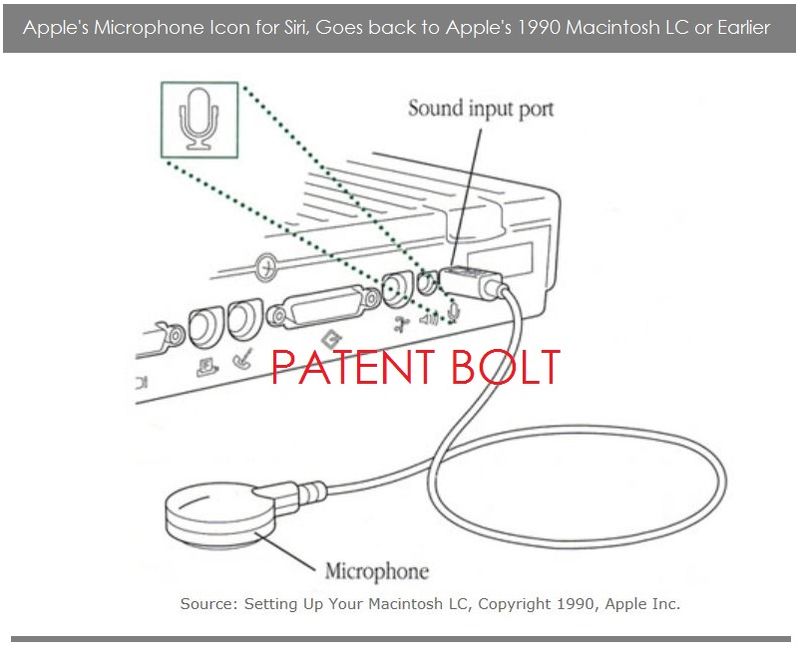 Nie je celkom jasné, kedy získal svoj patent Samsung, no Apple zažiadal o ochrannú známku pre ikonu v roku 2012. No aj napriek tomu, že teraz táto ikona symbolizuje Siri, nejedná sa prakticky o žiadnu novinku. Apple použil prvýkrát ikonku už v 90. rokoch pri počítači Macintosh LC, kde ale symbolizovala port pre mikrofón.
