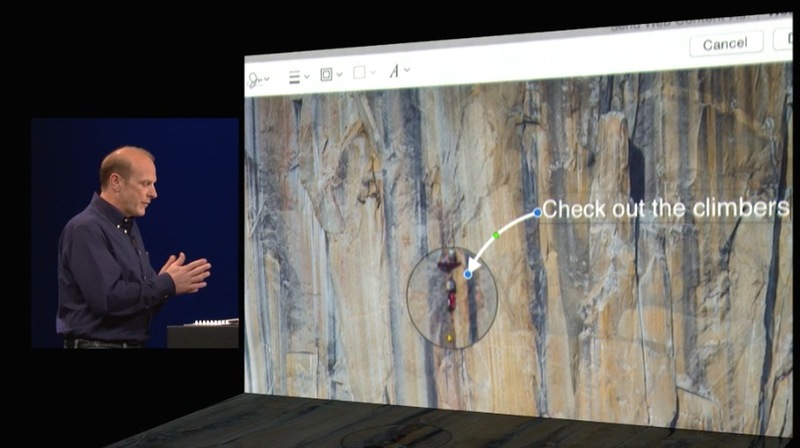 iMessage dostali úplne nový dizajn. Budete môcť využívať svoj Mac ako telefón. Ak vám niekto zazvoní na iPhone môžete hovor jednoducho prijať na Macu a telefonovať prostredníctvom počítača. Prepojenie všetkých Apple zariadení sa zdá byť dokonalé. A znovu sme pri Safari. Craig práve predvádza možnosti zdielania informácií, ktoré nové Safari ponúka. Vidíme hovor Dr. Dremu pomocou Macu. zaujímavosťou je, že Mac vám ukáže intenzitu vašeho hlasu ako pri mixážnych pultoch.