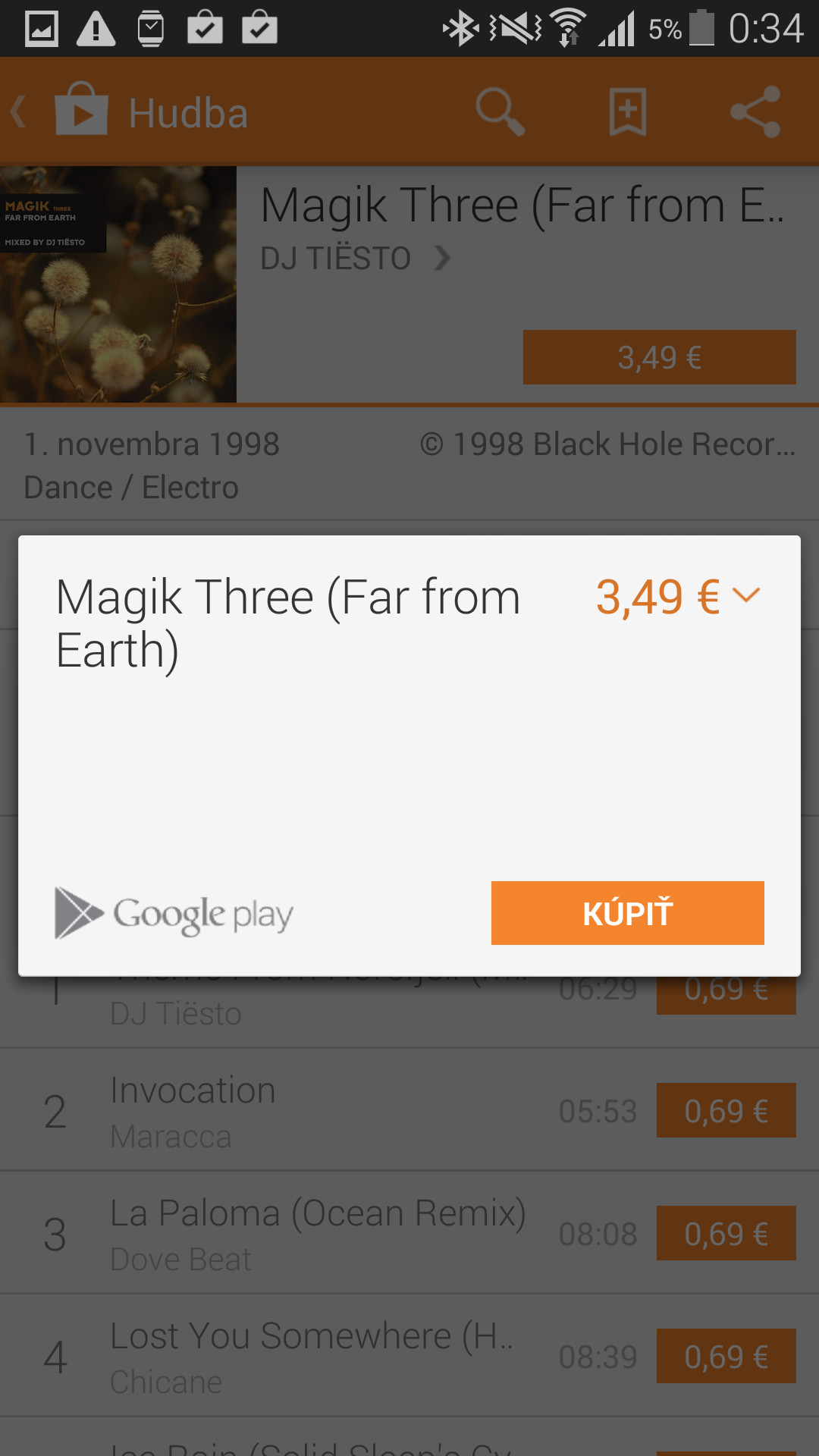 To som si uvedomil práve v teraz, keď už som používateľom služby Google Play Music. Jednou z prvých vecí, ktoré mi doslova vyrazili dych, boli extrémne nízke ceny albumov v porovnaní s iTunes. Rád počúvam trance a včera som zrovna naďabil na staršiu kompiláciu Magik Three (Far From Earth) od svetoznámeho holandského DJ Tiesta. Pretože sa kompilácia už dlhší čas nachádza v mojom Wish Liste v iTunes, mal som v pláne si ju jedného dňa kúpiť. No namiesto toho, aby som si ju kúpil v iTunes, som si ju kúpil u konkurencie. Prečo? Pretože konkurencia mi predala celý album takmer za tretinu ceny, než za akú by mi ju predal Apple. Zatiaľ čo v iTunes tento album stojí 8,99€, v Google Play som ju našiel iba za 3,49€, čo je v obchode od Google celkom bežná cena za niektoré hudobné albumy od mnohých interpretov. No stretnete sa tu aj s albumami, ktoré sú drahšie a niektoré z nich dokonca stoja rovnakú čiastku ako v iTunes Music Store. Napríklad Hybrid Theory od Linkin Parku – ten stojí v oboch obchodoch 5,99€ v základnej verzii. U iných albumov sa však jedná o rozdiel zhruba 1,50€ v prospech Google Play.