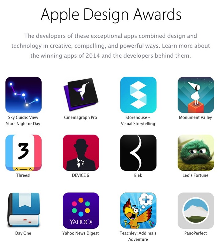 Stejně jako každý rok, Apple ani letos nezapomněl první den WWDC vyhlásit vítěze takzvaných Apple Design Awards. Jedná se o prestižní ocenění pro vývojáře aplikací určených pro iOS a Mac. Vítěze určují přitom samotní inženýři společnosti Apple a hledají vždy takové aplikace, které co nejlépe kombinují design, využití technologií a samotný nápad vývojářů. Apple celkově vybírá ocenění pro iOS vývojáře, Mac OS X vývojáře a také dvě aplikace, za nimiž stojí studenti.