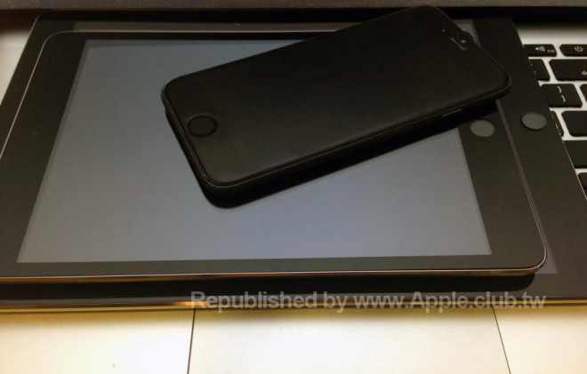 Fotografia odhaľuje novú generáciu iPadu mini s Retina displejom a Touch ID a rovnaké tlačítko by sme mali očakávať aj u tohtoročného modelu iPadu Air. Vyzerá to teda, že iPady budú odteraz ponúkať zjednotený hardvér a budú sa líšiť pravdepodobne len fotoaparátom, ktorý bude u iPadu aj teraz o niečo horší. Podľa špekulácií by však mal Apple po dvoch rokoch zvýšiť rozlíšenie senzoru z 5 na 8 megapixelov, vďaka čomu budú fotky rovnako veľké ako na iPhone. Na fotografii tiež vidíme maketu budúcej generácie iPhone, ktorá je prakticky totožná s tými súčasnými, čiže na nej môžeme vidieť zaoblené hrany a väčší displej.