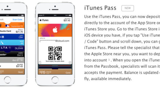 Samotný iTunes Pass využíva aplikáciu Passbook a tak sa vie uložiť do ponuky telefónu s tým, že užívatelia môžu vidieť, aký majú stav iTunes kreditu. Proces schvaľovania autorizovania kariet funguje na princípe, že si užívatelia pridajú do Passbooku bezplatnú kartičku, následne vyhľadajú špecialistu v obchode Apple Retail Store a povedia mu, akú čiastku by chceli na svoj iTunes Pass pridať. Špecialista následne oskenuje QR kód, ktorý je umiestnený na digitálnej karte a požadovaná čiastka je okamžite prevedená na kartu.