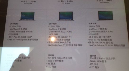 Nie je žiadnym tajomstvom, že Apple plánuje tento rok vypustiť do obehu novú generáciu MacBooku Pro s Retina displejom. Očakávali sme, že sa tak stane až koncom roka, no teraz sa zdá, že Apple môže začať predávať nové MacBooky každú chvíľu. Na čínskom internete sa totiž objavila fotografia priamo z obchodu Apple Store, kde sa na obrazovke info-iPadu nachádzajú detaily o nových počítačoch, vrátane cien v čínskych juan.