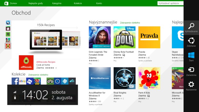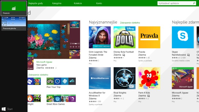 Ďalším veľkým problémom je pomalosť. Kým Windows 8 fungovala na mojom počítači plynulo, u „rýchlejšieho“ Windows 8.1 Update mi po stlačení Štart tlačítka trvá aj dve sekundy, než sa otvorí prostredie Domovskej obrazovky. Samozrejme, behom tých 2 sekúnd nie je možné s počítačom nič robiť, pretože on skrátka zamrzne. No a v súvislosti s prostredím domovskej obrazovky a Metrom prichádzam do stretu s ďalšími dvoma problémami. HotCorners alias interaktívne rohy, mi po prechode na najnovší Windows proste prestali fungovať. Kým u starej dobrej Windows 8 bolo prepínanie medzi desktopom a Modern aplikáciou svižné, teraz musím stlačiť klávesu „Win“, aby som sa dostal do menu a odtiaľ sa musím prepnúť na pracovnú plochu. Podobne zložitá procedúra ma čaká aj pri prepínaní sa späť do Metro aplikácie. Už nestačí posunúť myš k ľavému hornému rohu a tam sa prepnúť. Teraz musím ísť myšou dole k tlačítko Štart (ktorého sa chcem čo najskôr zbaviť) a z neho smerom nahor, kedy sa už vysunie celá ponuka multitaskingu.