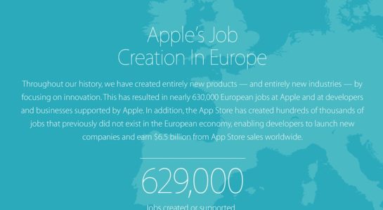 Apple doposud zveřejňoval informace pouze o pracovních místech, které vytvořil v USA, nyní poprvé víme, že s Applem je spjato také 629 000 pracovních pozic v Evropě. Z tohoto počtu je pak 500 000 pozic spjato s App Storem. Z celkových 20 miliard amerických dolarů, které Apple vyplatil vývojářům jako jejich 70% provizi za prodej aplikací v rámci iTunes App Store a Mac App Store vyplatil 6,5 miliardy dolarů právě do Evropy. Díky aplikacím se podle Applu zvýšilo v roce 2014 celosvětové HDP o 86 miliard dolarů. V Evropě je nyní 280 500 členů Apple Developers program z čehož 52 200 jich je v Německu a 30 000 ve Francii.