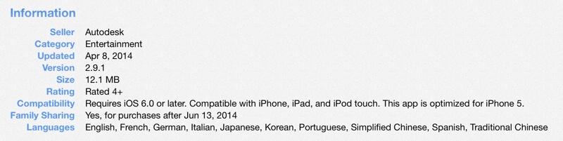 Navyše, u jednotlivých aplikácií budú môcť nastaviť, odkedy bude funkcia aktívna a tak je Family Sharing dostupný u aplikácie Sketchbook Mobile len u všetkých nákupov, ktoré boli vykonané po určitom dátume, v tomto prípade po 13. júne/červnu 2014. U aplikácií, ktoré nebudú mať funkciu zapnutú, sa potom u detailov jednoducho objaví „Not Available“, čiže nedostupné. Funkcia ako taká umožní prepojiť až 6 účtov Apple ID a umožní im vzájomne zdieľať zakúpenú hudbu, aplikácie, filmy, knihy a veľa ďalšieho a taktiež im umožní zdieľať rovnakú kreditnú kartu, kalendáre, pripomienky, fotografie a videá a veľa ďalšieho.