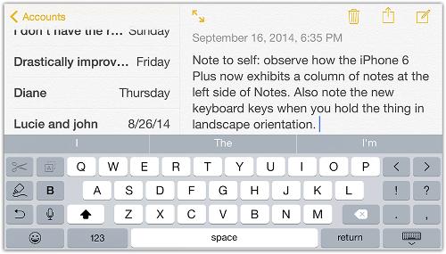 Uvnitř nového iPhone je o 25% rychlješí čip, než který nabízel iPhone 5s. Toho bych si však bez testování nevšiml a pokud nemáte starý a nový telefon vedle sebe, nemáte šanci to pozorovat. iPhone 6 Plus má optickou stabilizaci obrazu, která stabilizuje čočku vůči pohybu telefonu a funguje nadmíru dobře. U iPhone 6 Plus je také zajímavé, že když pšíete na klávesnici při orientaci na šířku, je zde tolik prostoru navíc, že apple přidal několik dalších kláves na obrazovku. Na levé straně máte k dispozici tlačítka pro copy-paste, změnu tučných a běžných písem a tak dále. Na pravé straně pak máte interpunkční znaménka a skutečné kurzorové klávesy, které nabízel první iPhone.