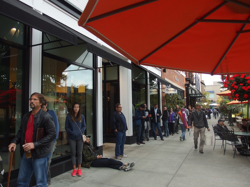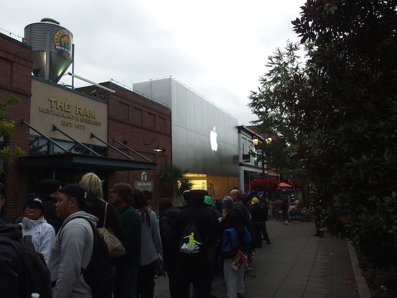 cekal sem 14 hodin ve fronte ve Vancouveru a asi muj nejhorsi zazitek.. protoze kdyz uz to vypadalo nadejne, ze uz budu na rade, tak ohlasili, ze vsechny iPhone 6 plus jsou pryc! jelikoz sem tam sel pro tento telefon, tak pekne po 14 hodinach sezeni na zemi (i kdyz v budove v teple) sem se zbalil a odjel s neporizenou, protoze kupovat iPhone 6 jen proto ze sem ve fronte se mi vazne nechtelo.. takze asi tak muj zazitek z cekani na iPhone.. jinak tam bylo kolem 800 – 1000 lidi.. a ty prvni v rade tam cekali od 18.9. 8:00.. proste blazni ve stanech :D