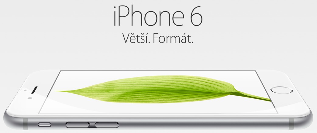 Ačkoli Apple představil iPhone 6 a iPhone 6 Plus již před více než dvěma týdny, Apple.cz doposud ani o jedné z těchto novinek neinformoval. To se však dnes změnilo a tak na Apple.cz naleznete kompletní přeložené informace z Apple.com s tím, že datum možnosti zakoupení telefonu bude upřesněno. Bohužel jako vždy, i tentokrát se na Apple.cz setkáváme s překladem, který příliš smyslu nedává, ale je pro Apple.cz takzvaně politicky správný, tedy alespoň v očích vedení Applu. iPhone 6 vás tak přivítá sloganem: „Větší. Formát.“, což sice příliš nelahodí sluchu ale co naděláme.