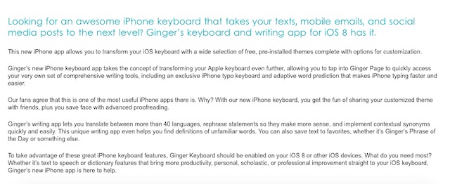 Ginger na to jde trochu jinak. Tato klávesnice vám hlavně pomůže s gramatikou a slovní zásobou. Stejně jako ostatní vám předpoví slovo, ale také vám zkontroluje gramatiku, najde synonyma, opraví divně znějící věty a přeloží váš text do jiného jazyka. Též nabízí slovník, který si můžete poupravit a přidat do něj jména, místa, slangové výrazy a jiná unikátní slova.