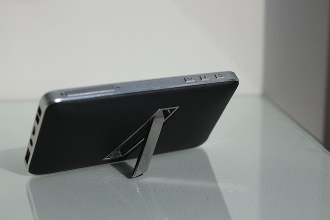 Zatím co z přední strany vidíte jen elegantní mřížování výdechů reproduktorů, při pohledu z vrchní strany vidíte trojici tlačítek, které slouží na zapnutí/vypnutí přístroje, aktivaci Bluetooth a také na přijmutí hovoru. Jak nyní již sami tušíte, reproduktor disponuje také mikrofonem a funkcí handsfree, ke které se však ještě vrátíme. Další dvojice tlačítek na vrchní straně pak slouží pro změnu hlasitosti. Levá strana reproduktoru disponuje poměrně velkým a nutno podotknout, že kvalitním mikrofonem spolu s LED diodami, které vás informují o aktuálním stavu baterie. Na pravé straně reproduktoru pak najdete úchyt na poutko, které je součástí balení, microUSB konektor, který slouží pro nabíjení samotného reproduktoru, 3,5mm jack konektor pro připojení zařízení, které nedisponují Bluetooth a také klasické USB, díky kterému můžete použít reproduktor jako powerbanku s tím, že váš iPhone 5s dokáže reproduktor, respektive jeho baterie nabít jednou na 100%. Ze zadní strany reproduktoru pak najdete stojánek z leštěného hliníku, který je možné vyklopit a postavit tak reproduktor například na noční stolek, kam se perfektně hodí.