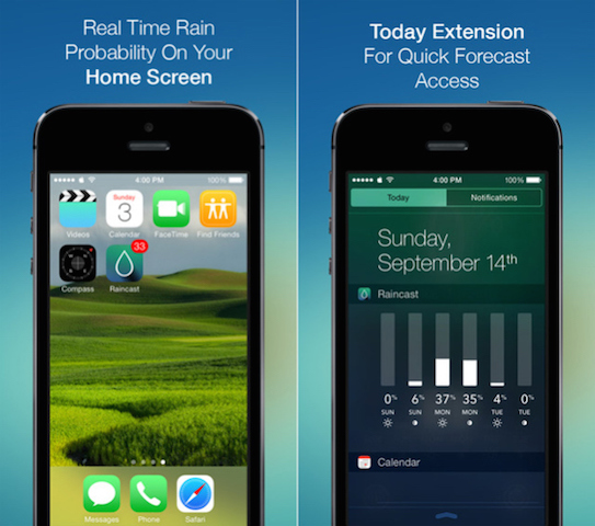Leon: Nejspíše to, že součástí těchto aplikací jsou šikovné widgety, které se dají přidat do notifikačního centra? Raincast widget je vidět na přidané fotografii.