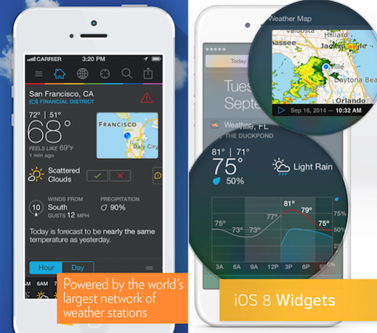 Znovu jde o aplikaci pro předpoveď počasí, Weather Underground na to jde ale trochu jinak. Samozřejmě poskytne satelitní mapy, předpovědi a widgety. Speciální je v tom, že sbírá informace přímo od uživatelů, a tak je schopna dát dohromady tu co nejpřesnější předpoveď.