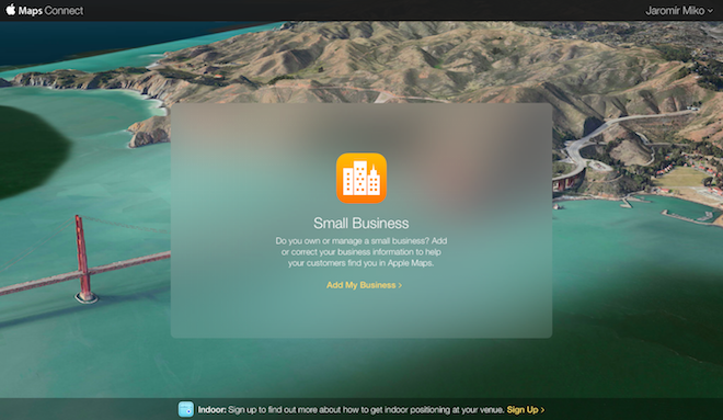 Apple dnes spustil novú službu Maps Connect, ktorá umožňuje podnikateľom zapísať a svoje podniky do služby Apple Maps. Táto nová bezplatná služba ponúka podnikateľom zaregistrovať podniky s pomocou svojho Apple ID s tým, že sem pridajú všetky dôležité informácie o svojom podniku, ako je druh podniku/inštitúcie, kontaktné údaje a ďalšie údaje. Po zaregistrovaní údajov a zaznamenaní vašej polohy trvá približne týždeň, kým sa podnik bude dať vyhľadať v službe Apple Maps pre užívateľov. Záznamy je treba potvrdiť s pomocou e-mailovej adresy alebo hovoru.