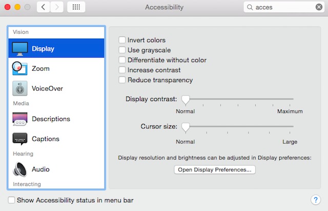 Pokud chcete, aby se váš Mac zrychlil, tak tento krok musíte následovat. Právě průhlednost oken a tabů potřebuje spoustu výkonu. Slouží pouze jako designový prvek, a tak o nic nepřijdete. Ještě jeden další tip ohledně průhlednosti: stejně jako v iOS tak i v Yosemite je volba zvýšit kontrast (v “zpřístupnění”). Zapnutí této volby vám může pomoci se čtením textu a tlačítek.