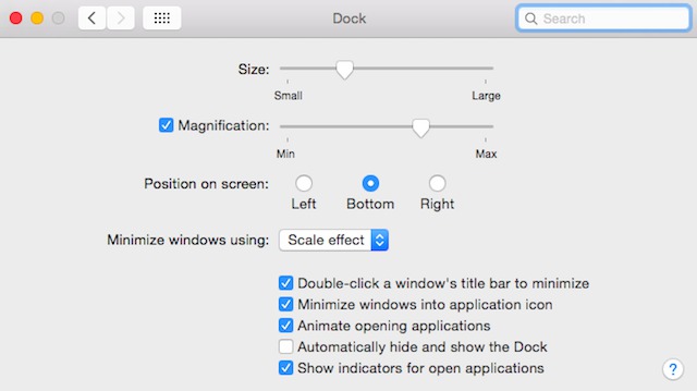 - klikněte na “Dock” a poté na “Zmenšení” vedle “Minimalizovat okna do ikon aplikací”
