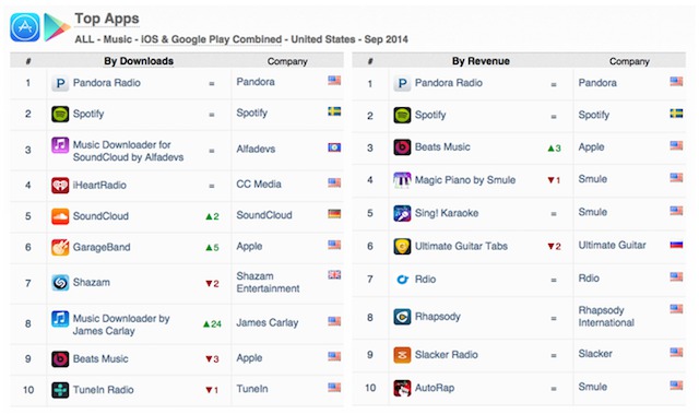 V rebríčku AppAnnie je však služba Beats až na deviatom mieste, čo bude Apple chcieť určite výrazne zlepšiť, aby sa mu tým zvýšili aj jeho tržby v tejto službe. Pred Beats Music sa nachádzajú podobné streamovacie služby ako je iHeartRadio či Pandora. Podľa expertov môže za nízke postavenie v rebríčku fakt, že Beats Music vyžaduje od zákazníka predplatné na určité obdobie, zatiaľ čo služby ako Pandora či Spotify fungujú aj zadarmo, ale s reklamami. Pre Apple sú zatiaľ najväčším prínosom práve zisky z predplatného u tejto služby. Práve tieto zisky zapríčinili, že je služba na treťom mieste z hľadiska najziskovejších streamovacích služieb, hneď za lídrami trhu Pandora Radio a Spotify. Pre ne sú najväčším prínosom financií práve reklamy umiestnené v mobilných aplikáciách. Treba však pripomenúť, že Beats Music si oproti poslednému meraniu v rebríčku ziskovosti polepšilo až o 3 miesta.