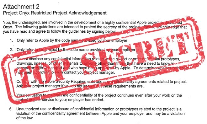 Podmínky rozsáhlých dohod o mlčenlivosti mezi Applem a dodavateli byly zveřejněny během probíhajícího konkurzního řízení společnosti GT Advanced Technologies. Soudce z veřejného úřadu zveřejnil řadu dokumentů, mezi nimiž byla i smlouva o utajení, kterou podepsal Apple s GT Advanced Technologies. V této smlouvě se mimo jiné uvádí například to, že jsou projekty které se tvoří pro Apple zpracovány pod tajným krycím jménem, aby se zabránilo úniku. Například společnost GT advanced pracovala na projektu pro Apple, který byl označen jako Project Onyx.