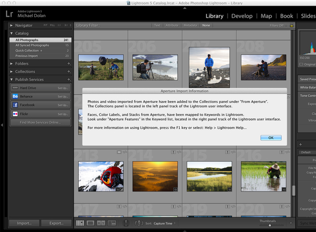8a7clightroom-4-logo-iconAdobe vydalo novú aktualizáciu pre populárny nástroj na úpravu fotografií, Lightroom. Nová aktualizácia Adobe Lightroom 5.7 prináša množstvo nových funkcií, medzi ktorými nechýba ani zabudovaný nástroj pre importovanie obsahu z aplikácií Aperture a iPhoto, ktorých vývoj ukončil Apple tento rok z dôvodu pripravovania novej aplikácie Photos pre OS X. Aktualizácia prichádza len krátko po vydaní samostatného nástroju pre migráciu dát z programov od Apple do Adobe Lightroom.