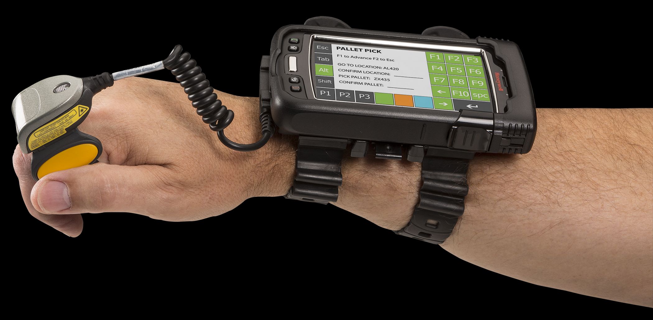 - Nositelná elektronika Honeywell je díky pohodlnější a hygieničtější připevňovací pásce navržena pro dlouhodobější nošení a pro její snadné sdílení s ostatními pracovníky. Nositelné zařízení s velkým displejem, flexibilní dotykovou klávesnicí, operačním systémem Windows® Embedded Handheld a podporou Bluetooth kruhového skeneru dává pracovníkům svobodu pohybu k maximalizaci jejich produktivity práce.