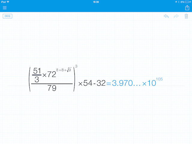 Dodnes nechápu, proč Apple do iPadu nepřidal nativní aplikaci počasí a kalkulačky. Zatímco pro počasí používám Yahoo Weather!, tak jako kalkulačku používám MyScript Calculator, což je trochu zvláštní aplikace – není to klasická kalkulačka. Pro zadání hodnot a čísel je jednoduše napíšete na displej, software je rozpozná a ihned rozpočítá. Máte možnost psát skutečně dlouhé operace, do kterých po jejich vyřešení můžete jednoduše vstoupit a upravit hodnoty, jak se vám zachce. Aplikace podporuje klasické matematické operace jako +, -, krát či děleno. Navíc ale podporuje mimo jiné sin, tan, cot, acos, ln, log, phi, % či odmocniny. Jde tedy o pokročilou kalkulačku, která je navíc zdarma.