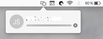 5. V menu baru vpravo se ukáže ikona symbolizující, že je vaše obrazovka sdílena. Odesílání požadavku můžete ještě v procesu v rychlosti zrušit kliknutím na křížek. Protistrana musí žádost přijmout a pak již začne samotné sdílení.