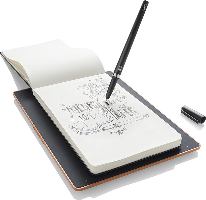 Narozdiel od pera, ktoré by mohol jedného dňa predstaviť Apple, je pero iSketchnote kompatibilné len s bezplatnou aplikáciou pre iPad. Pokiaľ ale chcete, aby technológia fungovala, svoj papier alebo poznámkový blok si potrebujete položiť na podložku Slate s Bluetooth anténou. Tá konvertuje text a kresby do digitálnej podoby okamžite a rozhodne poteší, že je odolná voči škrabancom, takže nemusíte mať obavy, že by ste pri tlačení na papier podložku poškodili. Má váhu 397 gramov a poskytuje výdrž batérie až do 10 hodín. Taktiež obsahuje port microSD a port microUSB pre nabíjanie.