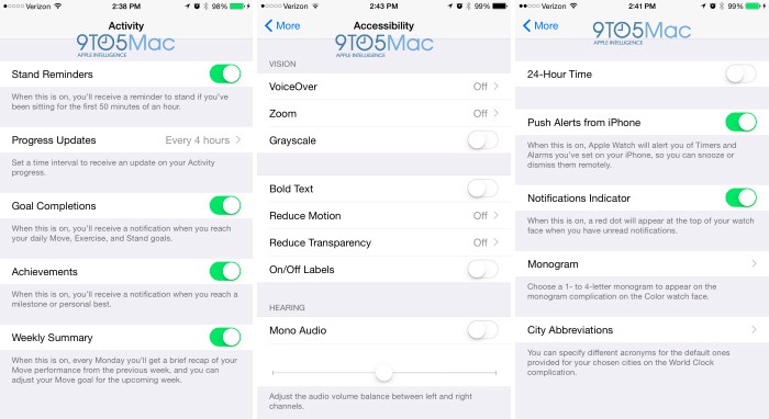 Už včera sme sa vďaka iOS 8.2 beta 4 dozvedeli o oficiálnej Apple Watch aplikácii, ktorá bude slúžiť na synchronizáciu a správu nových hodiniek od Apple. Ako však bude vyzerať aplikácia, nám včerajšia beta neodhalila, keďže Apple nám neplánuje aplikáciu vnucovať a zverejní ju cez App Store, odkiaľ si ju budú môcť stiahnuť majitelia hodiniek. Na to, ako vyzerá oficiálna companion aplikácia, sa máme možnosť pozrieť však už teraz, keďže zdroje blízke 9to5mac odhalili početné množstvo detailov a aj screenshoty z pripravovanej Apple Watch aplikácie. Tie však neodhaľujú žiadnu mágiu, ale pomerne klasickú aplikáciu nesúcu sa v duchu klasických nastavení.